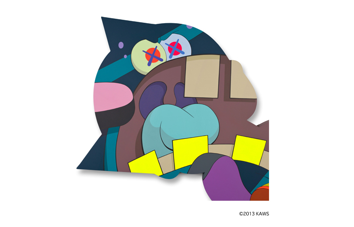 キャラクターやポップカルチャーに属する素材によって、KAWSが紡ぐ心理的コラージュが非常にスリリングな展覧会となっている。