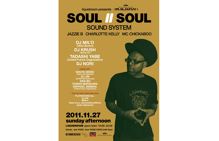 そして、SOUL Ⅱ SOULの発起人であり、日本にもファンの多いJazzie Bの来日公演が遂に決定。11月27日(日)に恵比寿LIQUIDROOMで行われるデイ・イベント"PLAY, JAPAN! Red Bull Music Academy"にて、SOUL Ⅱ SOUL SOUND SYSTEMとしてCharlotte Kelly、MC Chickaboo を率いたDJスタイルのライブ・パフォーマンスを披露する。さらに当日は、後にブリストル・サウンドとして世界を席巻することになるMASSIVE ATTACKの前身=Wild BunchのDJ.Mil'oも参戦。
