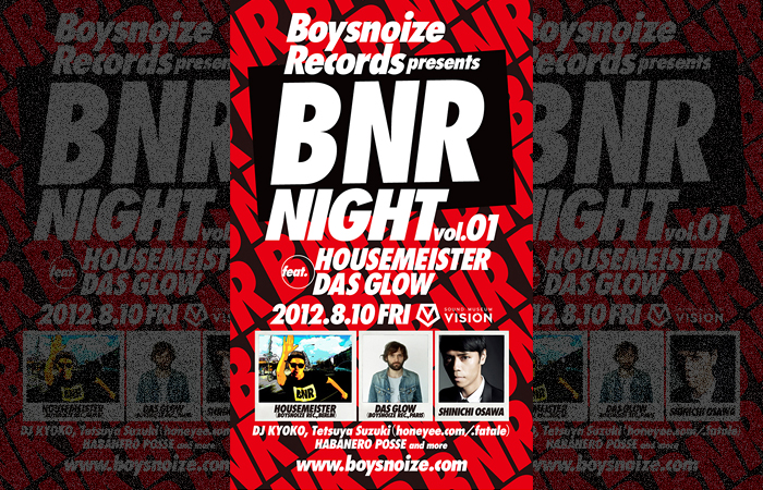 記念すべき第一弾を飾るのは、テクノ/エレクトロにゲットーサウンドをミックスし"テクノBボーイ"の異名を持つHOUSEMEISTER、そしてDAFT PUNK直系のディスコからディープなテクノまでを幅広い知識とスキルで巧みにミックスするDAS GLOWが登場。