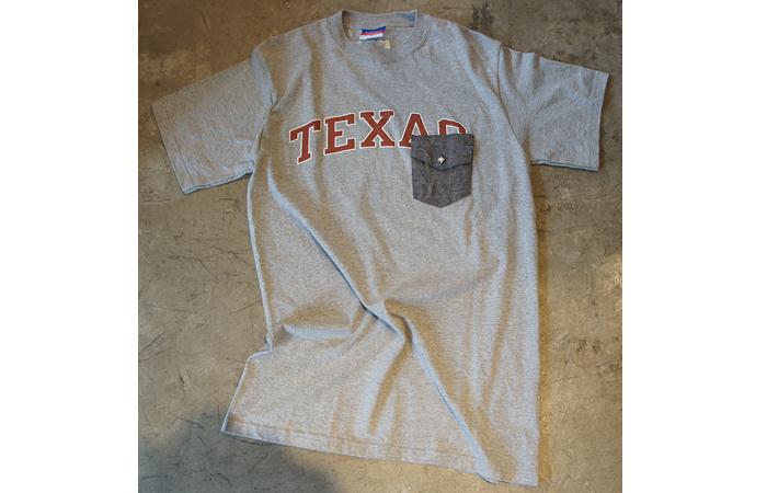 さらに、オープンを記念して制作された限定リメイクTシャツがリリース。チャンピオンのテキサスカレッジTシャツに、ウエスタンポケットをリメイクされた、grocerystore.らしいアイテムとなっている。
