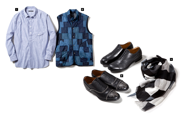 まずSOPHNET.は、ここ数シーズン続く"AUTHENTIC" をテーマに、普遍的なSOPHNET.のスタイルをアップデート。写真のトーンの違う数種類のデニムをパッチワークしたキルティングベストや、ニューモデルとなるロングシャツといったスタンダードな中に今の空気を加えたアイテムをはじめ、継続して提案するラペルジャケット、様々なシルエットのパンツやシャツなど、素材の表情を活かした立体的なプロダクトを展開。