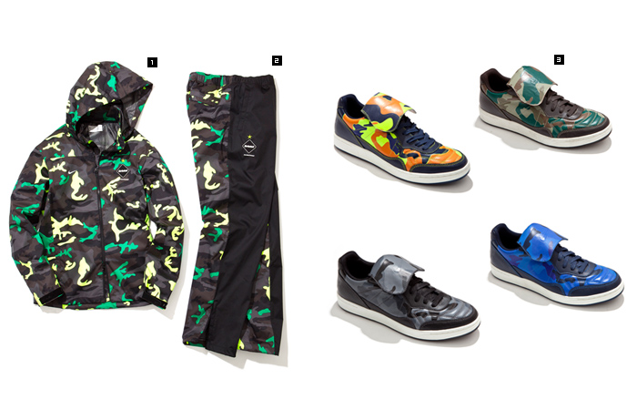 「CAMOUFLAGE」をテーマに、ブライトカラーで彩られた様々なカモフラージュ柄を駆使したコレクションより注目のアイテムをいくつかご紹介。まずブランド定番のトラックスーツは、防水&遮風性に優れるストームフィットを採用。今シーズンを象徴するカモフラージュでパネル切り替えされたデザインがポイント。そして1994年に発売されてから20周年を迎えるNIKE FOOTBALLの象徴的モデルであるNIKE TIEMPOは、既存のモデルと差別化をすべくアッパー部分を同じくカモフラージュでアップデート。SOPH.SHOPエクスクルーシブとなる貴重な一足となっている。