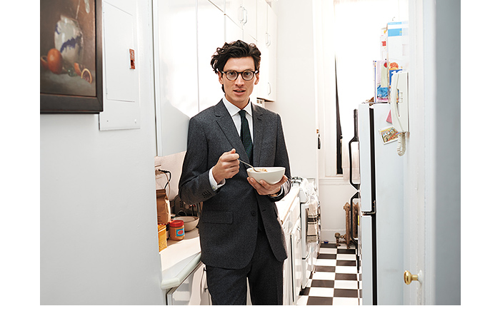ブランドのルーツであるニューヨーカーのリアルを表現したスーツは、都会的なシルエットをベースに、素材にはイタリアの老舗ファブリックメーカーの高級ウールを使用。ジャケットの内側には男の三種の神器ともいうべきペン、メモ帳、小説がスマートに収納できるポケットをあしらうなど、ブランドならではのウィットに富んだディテールもポイント。セットアップはもちろん、単品使いも可能な守備範囲の広い逸品となっている。
